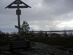 Sur le port de Kem se trouve un embarcadère en ruines d’où partaient les barges qui emmenaient les bagnards du Goulag aux Iles Solovkis. La mer Blanche étant gelée pendant de longs mois, ils attendaient dans des barraquements où les conditions de vie étaient épouvantables. Ces installations de Rabotchi Ostrov (L’Ile des Travailleurs) ont servi de 1923 à 1937. Presque tout a disparu. L’Eglise orthodoxe qui autrefois possédait ces terrains en a repris possession. Des croix ont été érigées depuis une dizaine d’années en souvenir des martyrs des Solovkis, le premier grand camp de répression politique où ont été expérimentées toutes les méthodes qui seront généralisées dans les camps du Goulag à partir de 1930. A.B.