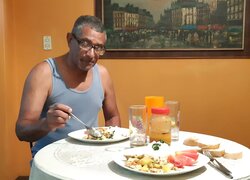Constats empiriques : lorsque je lui donne de l’argent pour faire le marché, il cuisine un dîner délicieux présenté avec raffinement, si j’apporte de la bière ou du vin à dîner, aucune religion ne lui interdit de vider la bouteille. Je constate qu’en hébreu, il est capable d’articuler quelques mots comme kessef, l’argent, le fric. Son niveau d’anglais ne dépasse pas le rez-de-chaussée ce qui complique les échanges avec son autre locataire, une Vietnamienne qui a entrepris un tour de l’Amérique latine pour guérir un chagrin d’amour. La Vietnamienne neurasthénique qui tousse et crachote en se tenant le front ne quitte guère la chambre. A travers la porte, j’entends un soir la jeune femme crier I want to kill you. La réplique d’Hugo est inaudible. Le lendemain matin, elle m’explique qu’il est une personne très bonne mais un vilain macho, qu’il se promène tout nu dans l’appartement, exprès. Hugo, qui s’entretient avec un appareil de musculation, a de bonnes raisons d’être fier de sa tournure à 70 ans mais ce n’est pas une raison pour enquiquiner sa locataire et la harceler de frôlements importuns. Je réconforte et compatis tout en me demandant pourquoi elle ne se cherche pas une logeuse octogénaire moustachue qui lui ficherait la paix.