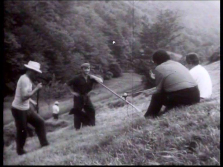 Sur un champ pentu, deux frères travaillent à grands coups de râteau et de fourche à amasser des bottes de foin. Répondant aux questions du psychiatre catalan François Tosquelles, l’un des pères de la psychothérapie institutionnelle (et directeur de l’hôpital de Saint-Alban filmé dans Regard sur la folie, 1961, autre film de Mario Ruspoli), ils interrompent un instant la fenaison pour parler de ce qui devrait changer dans la vie des agriculteurs. L’un déplore la résistance des vieux à tout changement du mode d’exploitation, l’autre insiste sur la nécessité de coopérer pour s’équiper en matériel moderne. « Sans entraide, de la plus spontanée à la plus organisée, on s’en sortira pas. Si on veut arriver à quelque chose, il faut que tout le monde prenne conscience de cette évolution aussi. »