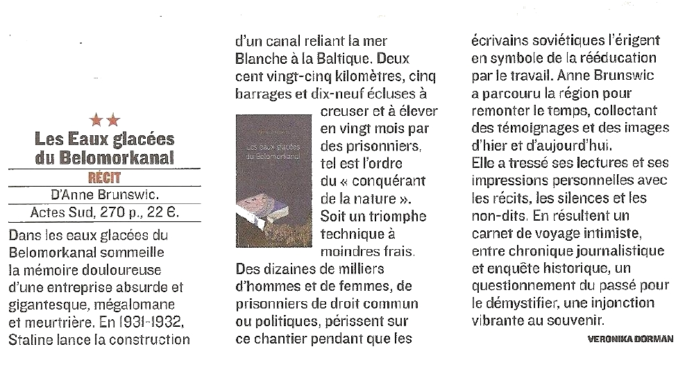 "Elle a tressé ses lectures et ses impressions personnelles avec les récits, les silences et les non-dits. En résultent un carnet de voyage intimiste, entre chronique journalistique et enquête historique, un questionnement du passé pour le démystifier, une injonction vibrante au souvenir" écrit Veronika Borman dans Le Figaro Magazine